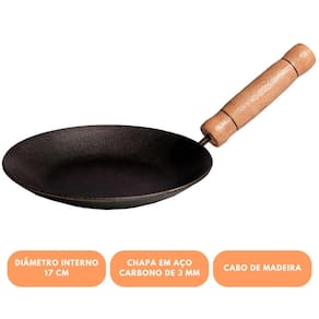 Fritadeira Redonda em Chapa de Aço 3mm com Cabos de Madeira