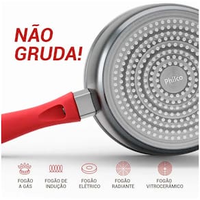Prepare qualquer tipo de alimento sem grudar e deixe tudo mais fácil de limpar com a Frigideira Philco Definitive. São 1,7 litros de capacidade total e 24cm de diâmetro prontos a te servir! Aproveite a possibilidade de cozinhar em fogões elétricos, a gás, vitrocerâmicos e até por indução sem nenhum transtorno!