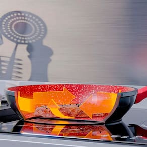 A frigideira possui revestimento interno Redstone Antiaderente, que promove mais eficiência e facilidade durante o preparo. Os alimentos não grudam, devido às 6 camadas de proteção em estrutura de alumínio com fundo triplo de 4,5mm, que garantem a segurança para você fazer de tudo, inclusive sem se queimar, pois o cabo em baquelite emborrachado é super resistente a altas temperaturas.