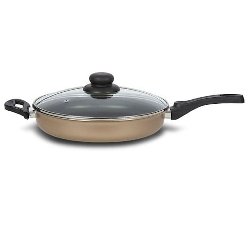 Também possue tampa de vidro temperado com abas inox, saída para vapor e pegador confeccionado em baquelite.