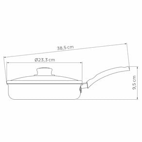 Frigideira Reta Tramontina Turim em Alumínio com Revestimento Interno e Externo em Antiaderente Starflon Max Vermelho com Tampa de Vidro 22 cm 1,7 L Para fazer aqueles legumes salteados deliciosos para seu almoço, conte com a frigideira reta Tramontina Turim em alumínio com revestimento interno e externo em antiaderente Starflon Max vermelho com tampa de vidro 22 centímetros de diâmetro 1,7 litros. Ideal para quem busca praticidade na cozinha, ela tem produção em alumínio com revestimento antiaderente Starflon Max e cabo em baquelite antitérmico. Devido a essas características, ela cozinha os alimentos de maneira rápida e uniforme, evita que eles grudem em sua superfície e proporciona um manuseio mais seguro. A frigideira vem com tampa de vidro temperado com borda de aço inox e pegador de nylon, que facilita a visualização e o preparo da sua receitas. Fácil de limpar, ela ainda pode ser levada a máquina de lavar louças, facilitando suas tarefas na cozinha! Corpo de alumínio com espessura de 1,2 mm que proporciona cozimento rápido e uniforme. Revestimento interno e externo de antiaderente Starflon Max que não gruda, é fácil de limpar, mais durável e não é prejudicial à saúde, pois é livre de PFOA.Tampa de vidro temperado com borda de aço inox.Cabo de baquelite antitérmico e pegador de nylon que oferecem segurança durante o manuseio. Pode ir à máquina de lavar louças facilitando seu dia a dia. Cuidados com o produto A capacidade volumétrica máxima para cozimento é de 3/4 da capacidade total da peça. Posicione o cabo do utensílio voltado ao centro do fogão. Em fogões com grade, centralize a peça sobre a chama ou fonte de calor e alinhe o cabo com a grade.Utensílios quentes devem estar fora do alcance das crianças.Antes do primeiro uso, lave com esponja macia, sabão neutro ou detergente líquido. Depois de secar, unte a área interna com óleo ou gordura e leve ao fogo por um ou dois minutos. Deixe esfriar e lave novamente. Seu utensílio Starflon está pronto para uso com ou sem gordura, sempre em fogo baixo ou médio (nunca superior a 260 °C). Para mexer os alimentos use somente utensílios de silicone, nylon ou madeira. Com o uso, o pegador pode afrouxar devido à dilatação normal dos materiais. Reaperte apenas o suficiente, sem forçar.Limpeza: Evite a imersão do utensílio quente em água fria. Nunca utilize produtos abrasivos na lavagem. Se deixar queimar alimentos, umedeça a área e reserve até que possa remover os resíduos grudados com esponja e sabão. Para descarte do produto e embalagem siga as orientações de reciclagem vigentes. Garantia 90 dias para vícios ou defeitos de fabricação.