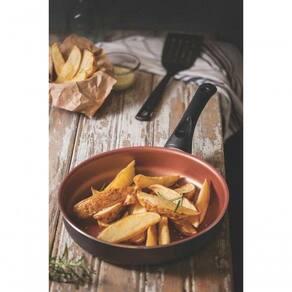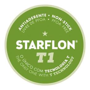 - Frigideira em alumínio com revestimento interno e externo de antiaderente Starflon T1.- Devido ao revestimento antiaderente os alimentos não grudam, proporcionando facilidade na limpeza.- Proporciona um cozimento rápido e uniforme.- Cabo com furo passante para pendurar o produto.- Cabo de baquelite antitérmico.- Pode ser utilizada em fogão a gás, elétrico e vitrocerâmico (resistência elétrica).- Pode ir à máquina de lavar louçÁTULA- Inteiramente de nylon.- Indispensável na preparação de alimentos em recipientes revestidos com antiaderente, pois desliza sem arranhar.- Resistente a altas temperaturas que pode chegar até 180C.- Cabo com furo passante para pendurar o utensílio.- Design moderno e cores diferenciadas.- Pode ir à máquina de lavar louça.- Quando usar a máquina de lavar louça, recomendamos retirar o utensílio logo que tenha terminado o ciclo enxaguar, a fim de que o mesmo seja secado manualmente.