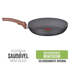 Cozinha saudável: Sem necessidade de óleo, deliciosamente natural.Antiaderente Minerium: Com efeito pedra, mais resistência.Thermo-Sinal: Muda de cor indicando o momento ideal para selar seu alimento.Alumínio de alta espessura: Com 2mm para um cozimento homogêneo e melhor distribuição de calor.Cabo soft touch: Para um manuseio mais confortável.Além de contar com a qualidade da marca Rochedo, presente no Brasil há mais de 100 anos, a Frigideira Rochedo Natural Stone 24cm é livre de substâncias tóxicas (PFOA), garantindo a segurança no uso do produto. Pode ser utilizada em fogão a gás, vitrocerâmico e elétrico, podendo também ser levada à máquina de lavar louças.