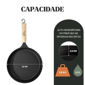 Frigideira Tradição 22 cm 1,2 L em Ferro Fundido e Cabo de Madeira Panela Mineira - Especificações Técnicas