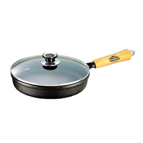 Frigideira Tradição Ferro Cabo Madeira PanelaMineira TV 24cm A Frigideira Tradição Cabo de Madeira da Panela Mineira é um produto moderno, prático e eficiente, que apresenta alto desempenho no preparo de diversas receitas. O calor distribuído por toda a superfície faz com que o alimento cozinhe de maneira uniforme, conservando suas propriedades e nutrientes. Possui um design autêntico e elegante, com fundo reto e bordas alongadas, o que a torna excelente para grelhar, fritar, cozinhar e servir. Muito utilizada em bares e restaurantes pela sua apresentação e por manter-se quente por muito mais tempo. Onde Usar: Pode ser utilizado em fogões a gás, a lenha, elétricos, cooktops de indução e vitro-cerâmicos. O cabo de madeira não permite que o produto seja levado ao forno, churrasqueira ou fogo de chão. Orientação de Uso e Conservação:Antes do primeiro uso: Lave com água e sabão, seque bem com um pano e leve ao fogo para remover toda a umidade. Já vem pronta para uso, então não precisa ser curada. Guarde em um local seco. Após cada uso: Lave com água e sabão, usando uma esponja ou escova para remover todos os resíduos de alimentos. Se restarem resíduos, ferva água com um pouco de detergente para soltá-los. Pintura: Revestimento atóxico que garante durabilidade e proteção prolongada, sem causar nenhum dano à saúde. Características Técnicas e Medidas:Altura Com Tampa: 11,5cm.Altura Sem Tampa: 4,5cm.Material: Ferro Fundido.Diâmetro: 24cm.Linha: Tradição.Cabo: Madeira.Litragem: 1,5L.Peso: 3,3Kg. Itens Inclusos: 01 Frigideira Tradição Cabo de Madeira Panela Mineira 24cm 1,5L.01 Tampa de Vidro Temperado Panela Mineira 24cm.01 Batoque em Platinela. Código: 387PMProdutoLojaPlast.