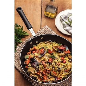 Frigideira Tramontina Alumínio Antiaderente 28cm Umalinha forte e resistente para um trabalho intenso na cozinha. As peçasde alumínio de maior espessura proporcionam maior desempenho durante ocozimento. O revestimento interno com Starflon T3, além de facilitara limpeza, permite que você crie receitas rápidas e saborosas. Recomendações de Uso: Antes do uso: Antes de utilizar o produto pela primeira vez, remova as eventuais etiquetas, lave interna e externamente o utensílio, usando apenas uma esponja macia, sabão neutro ou detergente líquido. Enxugue bem com um pano seco e unte todas as partes internas com óleo ou gordura. Esquente o utensílio em temperatura baixa por um ou dois minutos. Deixe-o esfriar, lave e enxugue novamente. A partir daí poderá ser com ou sem de uso: Durante o uso, evite esquentar o utensílio vazio. Use sempre aquecimento baixo ou médio para conservar o revestimento do utensílio. Para mexer ou retirar o alimento, utilize somente utensílios de plástico, madeira ou silicone, que não danificam a superfície com antiaderente. Após uso evite imersão do utensílio quente em água fria. Mesmo depois de vários usos, nunca utilize produtos abrasivos na lavagem. Podem ser levados, diariamente, à maquina de lavar louça.- Foto meramente ilustrativa- Embalagem litografada. Informações Adicionais: