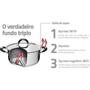 Produzidos em aço inox e com designs inovadores, os itens Duo Silicone são produtos modernos e de alta performance, prontos para te acompanhar na cozinha em suas melhores receitas Seus cabos, alças e pegadores tem composição em silicone, evitando a propagação do calor, assim você consegue manusear as panelas com segurança sem se queimar. O fundo triplo conta com uma camada de inox, que ficará em contato com alimento, evitando que haja partículas que alterem o sabor e os nutrientes dos produtos. A sua segunda camada é de alumínio, excelente para manter a temperatura uniforme, ou seja, o cozimento é feito por igual. A terceira camada externa é feita de aço inox, garantindo durabilidade e resistência.