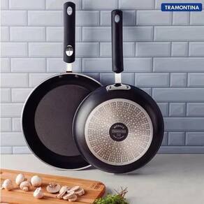 Frigideira Tramontina Mônaco Induction em Alumínio com Revestimento Interno e Externo Antiaderente Starflon Premium Pret A frigideira Tramontina Mônaco Induction em alumínio com revestimento interno e externo antiaderente Starflon Premium preto 24 centímetros de diâmetro 1,6 litros é perfeita para quem preza por alta qualidade na cozinha Devido ao corpo de alumínio com espessura de 3,0 mm e ao revestimento interno e externo de antiaderente Starflon Premium, ela proporciona o cozimento rápido e uniforme dos alimentos, garante que eles não grudem em sua superfície e ainda é durável e não prejudicial a saúde. Seu cabo metálico possui proteção de silicone e proporciona redução da propagação de calor, aumentando a segurança e otimizando o seu manuseio. Ela ainda é muito fácil de limpar e pode ir à máquina de lavar louças, facilitando seu dia a dia. Com a Tramontina, você tem os melhores itens para equipar sua cozinha Ean: 7903457989931