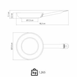 - Seu formato possibilita um preparo ágil e rápido, contando também com o fundo triplo (aço inox + alumínio + aço inox) que distribui o calor uniformemente pela frigideira.