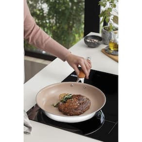A frigideira Tramontina Romagna em aço inox e alumínio com revestimento interno cerâmico marfim 30 centímetros de diâmetro e 3 litros é a escolha ideal para quem busca qualidade e durabilidade na cozinha. A linha Romagna, é desenvolvida com a tecnologia Biply Induction, que une aço inox e alumínio, a qual proporciona um cozimento rápido e uniforme, além de economia de energia e segurança na hora de cozinhar. Ela é com todos os tipos de fogões, incluindo indução, oferecendo versatilidade na hora de preparar suas refeições. Seu revestimento cerâmico facilita a limpeza e com o cabo metálico com proteção em silicone, você tem segurança e conforto durante o manuseio. Com ela, você terá uma aliada na cozinha, capaz de facilitar o seu dia a dia e entregar resultados incríveis.