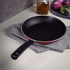 Segurança, durabilidade e facilidade na limpeza O cabo em baquelite antitérmico oferece manuseio seguro e confortável, mesmo durante o preparo em altas temperaturas. Além disso, sua superfície antiaderente facilita a limpeza e permite o uso na máquina de lavar louças, otimizando suas tarefas na cozinha. Resistente, durável e com um design moderno em vermelho vibrante, essa frigideira é uma excelente escolha para quem valoriza eficiência, segurança e beleza ao preparar suas refeições.