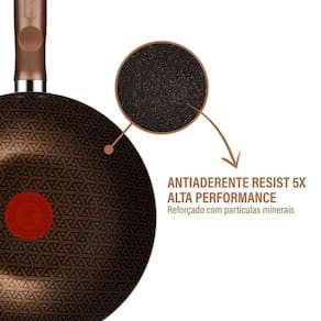 Frigideira Wok Expert Antiaderente Resist 5X 24cm Rochedo Antiaderente Resist 5X da linha Rochedo Expert, reforçado com partículas minerais, oferece uma durabilidade excepcional. Com a Frigideira Wok Rochedo Expert Chocolate 24cm, você trará modernidade e qualidade à sua cozinha, surpreendendo sua família.