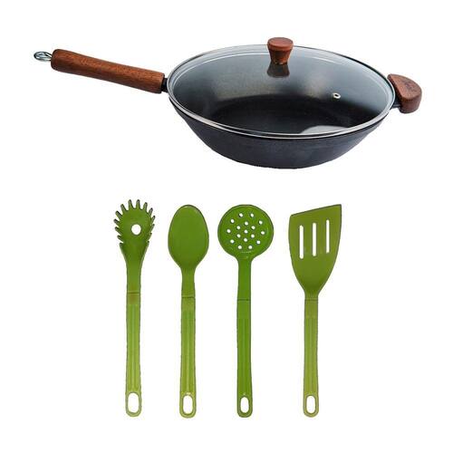 A frigideira wok é um tipo de frigideira com fundo arredondado ou abaulado, usada originalmente na cozinha oriental, é antiaderente, também conhecida como teflon, revestida com uma substância capaz de repelir certas substâncias, por isso, a comida não gruda nela. É resistente a altas temperaturas e a arranhões, suas bordas mais altas são eficientes e excelentes para o preparo de receitas variadas. As frigideiras wok em alumínio antiaderente contam com uma camada que cobre o seu material e evita que o alimento grude em seu interior. Dessa forma, contribuem para uma culinária saudável, dispensando o uso excessivo de gordura ou óleos vegetais. Para quem gosta de receitas variadas, como: legumes salteados, frango xadrez, picadinhos de carne e Yakisoba não pode deixar de ter uma em sua cozinha.