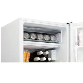 Características: Freezer de alta eficiência; Baixo consumo; Termostato preciso; Design Clean Refrigerado por compressor. Gás Ecológico R600A; Porta ovos e bandeja de gelo Eficiência energética: Selo Procel A Capacidade: 93 Litros Funções: Freezer e refrigerador Número de portas: 1 Gavetas: Sim Prateleiras: 2 + 1 de vidro Prateleiras para PETS: Sim Porta latas: Sim Possui Rodinhas: Não Pés niveladores: Sim Gás ecológico: Sim