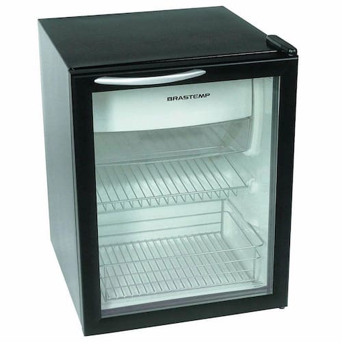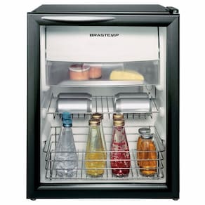 O Frigobar Brastemp com porta de vidro tem capacidade para 76 litros e é ideal para quem busca um produto moderno e funcional. Compacto e completo, conta com compartimento extra-frio, congelador, prateleiras para latas e cesto multiuso. Sua porta é resistente a impactos pois possui vidro duplo temperado, conta com sistema anti-sudação para evitar a formação de suor. A prateleira tem duas opções de posição com sistema "push back": quando a primeira latinha é removida, a segunda se posiciona em seu lugar. Seu Congelador possibilita a formação de gelo e acomodação de pequenos congelados.