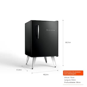 Características Tipo: 1 Porta Número de Portas: 01 Frost Free Porta-Latas Porta-Garrafas Especificações Técnicas Modelo: BRA08HE Capacidade Total: 76 Litros Capacidade armazenamento do Freezer: 8 Litros Capacidade Armazenamento do Refrigerador: 68 Litros Selo Procel (Eficiência Energética): A Consumo de Energia: 16.8 kwh/mês Cor: Preto Voltagem: 110V e 220V (não é bivolt) EAN: 7891129576445 (110V) 7891129576629 (220V) Garantia: 12 meses Dimensões e Peso Dimensões do produto com embalagem (AxLxP): 530x660x570 mm Dimensões Líquidas do Produto com Puxador (AxLxP): 810x480x550 mm Peso do produto com embalagem: 25 kg Peso do produto sem embalagem: 23 kg Serviço de Instalação e Orientação de Uso Para sua comodidade e segurança, a Fast Shop dispõe do serviço de Instalação e Orientação de Uso*. Agendamos o serviço para você, executamos a instalação com equipes próprias especializadas e autorizadas pelo fabricante, ensinamos como utilizar os produtos da melhor forma e temos uma área de qualidade para acompanhar e garantir que tudo dê certo. É rápido e fácil. Você pode contratar o serviço com o nosso canal Blá pelo WhatsApp no número (11) 3232-2949 ou em uma de nossas lojas. Consulte os valores e regiões atendidas.
