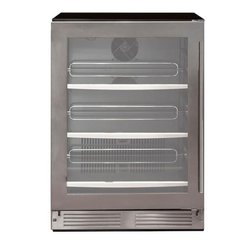 Frigobar e Beer Center com design moderno e robusto, sistema por compressor de alta performance, baixo ruído e vibração, luz de LED branca, porta em aço inox com vidro temperado duplo. Possui Heat sensor para evitar condensação do vidro. Projetado para ser embutido.Vendido e entregue por WebContinental