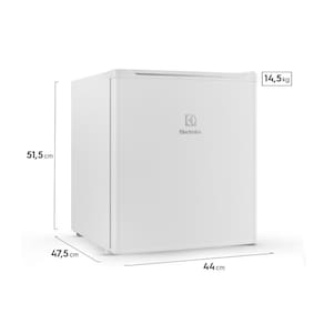 Em busca de praticidade, eficiência e design moderno para o seu dia a dia Temos o que você procuraO Frigobar Electrolux 47L Efficient EM50 Branco é compacto, funcional e versátil, ideal para quartos, escritórios, áreas de lazer e pequenos apartamentos.Com capacidade de 47 litros, oferece espaço suficiente para armazenar bebidas, lanches e alimentos, mantendo tudo sempre ao alcance da mão. Seu design clean na cor branca combina facilmente com qualquer ambiente, enquanto a porta reversível garante maior flexibilidade na instalação.O EM50 ainda se destaca pelo baixo consumo de energia apenas 12,3kWh/mês , com classificação de eficiência energética A , que proporciona economia de até 30% sem abrir mão do desempenho. Conta com prateleira interna, porta com espaço para garrafas, compartimento extra gelado e controle de temperatura, oferecendo praticidade no dia a dia.Silencioso e resistente, é a escolha ideal para quem busca comodidade e qualidade em um só eletrodoméstico. Especificações Técnicas:Marca: ElectroluxModelo: EM50Cor: BrancoTensão Elétrica: 110VCapacidade total: 47 litrosTipo de degelo: Manual Cycle DefrostControle de temperatura: Sim de -2C a 10CPorta reversível: SimCompartimento extra gelado: SimPrateleiras: 01 prateleira interna removível nichos na portaGavetas: 01Espaço para garrafas: SimPés niveladores: SimConsumo de energia: 12,3kWh/mêsEficiência energética: A Frequência: 60Hz Dimensões e Peso do Produto:Altura: 51,5cmLargura: 44cmProfundidade: 47,5cmPeso: 14,5kg Conteúdo da Embalagem:01 Frigobar Electrolux 47L Efficient EM50 Branco 110V01 Manual de instruções e uso Troca e Devoluções:Até 7 dias corridos após o recebimento. : 90 Dias 3 Meses