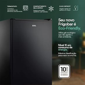 Econômico e ecológico e silencioso, com o Frigobar EOS Ice Compact você terá suas bebidas e alimentos prediletos sempre à mão contribuindo para o meio ambiente. Compacto e versátil, cabe em vários cantinhos e combina com qualquer ambiente: seu quarto, sala ou escritório. Conta com compartimento gela rápido, espaço para gelar suas bebidas prediletas em menos tempo. O Eco-Friendly oferece uma refrigeração por compressor com gás ecológico que não agride o meio ambiente e ainda reduz a sua conta de energia.