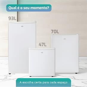 Seja para equipar o seu quarto, escritório, hotel, consultório ou qualquer ambiente que mereça mais praticidade, a linha de frigobares HQ entrega o essencial com o máximo de qualidade. Disponíveis em três tamanhos 47L, 70L e 93L nossos modelos foram desenvolvidos para atender diferentes perfis de uso com o mesmo padrão de excelência: design funcional, operação silenciosa, gás ecológico e controle de temperatura ajustável.