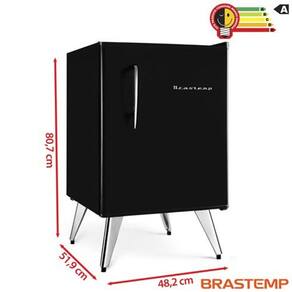 O mini refrigerador Brastemp Retrô é o primeiro no mercado brasileiro antenado na tendência mundial de estilo Vintage. Por fora, design inspirado nos anos 50: pés palitos cromados, especialmente desenhados para não riscar o chão, logo da Brastemp anos 50, e quatro opções de cores que remetem à essa década irreverente e divertida. Por dentro toda a comodidade do século 21, com direito a porta latas, separador de garrafa, e congelador. O Brastemp Retrô é mais que um compacto, ele é um objeto de decoração que se adapta a qualquer ambiente da casa. Ele mistura a modernidade dos dias de hoje com as lembranças nostálgicas do passado. Com capacidade para 76 litros, é perfeito para deixar suas bebidas e snacks sempre a mão. E, além de tudo, deixa o ambiente da sua casa ainda mais estiloso.