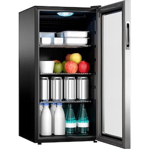 Características Gerais do produto Frigobar Suggar 46L cometros porta de vidro emetros inox, refrigeração por cometrospressor, 5 níveis de temetrosperatura, degelo metrosanual.
