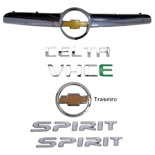 1 grade dianteira cromada 1 emblema gravata dourada da grade dianteira 1 emblema letreiro celta 1 emblema letreiro vhc e 1 emblema traseiro cromado 1 emblema gravata dourada do emblema traseiro 2 adesivo letreiro cromado em alto relevo spirit