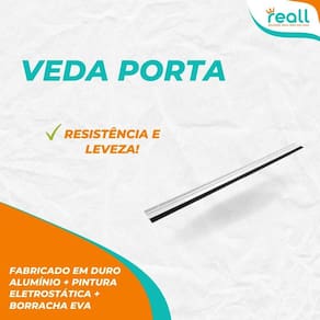 o veda porta reall é mais um produto da série para proteção da sua família fabricado em duro alumínio com pintura eletrostática nas cores branca, cinza e fumê e borracha laminada, combina resistência e leveza. O veda porta reall foi pensado e desenvolvido para proteger sua casa e sua família de diversos incômodos, pois ele impede a entrada de insetos, vento, poeira, água e chuva. Você encontra o veda porta reall em 5 opções de tamanho: 80cm, 90cm, 100cm, 120cm e 150cm. Acompanha parafusos, roldanas e instruções de instalação. É muito prático de instalar e você conta com a qualidade e garantia do produtos reall. Ah, e você sabia que todos os produtos reall tem garantia de um ano pois é somente uma marca que alia qualidade e inovação pode oferecer uma garantia dessas basta guardar sua :