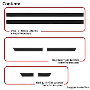 itens inclusos: - um 1 kit com quatro 4 frisos laterais. Dimensões - comprimento: 91 cm / 70 cm - largura: 5 cm - espessura: 0,5 cm todos