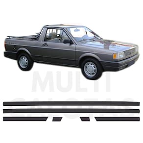 Kit Friso Lateral para o Volkswagen Saveiro CL 1989 a 1995. Contém: - Dois 2 Frisos Grandes para as portas - Dois 2 Frisos Medios que vão a tras da porta - Dois 2 Frisos Pequenos que vão a frente da porta Referência: 540A Cor: Cinza Fosco Material: Borracha Injetada Comprimento: 117 cm grande / 38 cm medio / 8 cm pequeno Largura: 4 cm todos Espessura: 1,5 cm todos Aplicação: Autocolante incluido fita dupla face Marca: Top Mix Marca: Não Informado