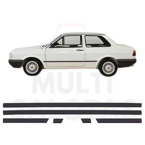 Kit Friso Lateral para o Volkswagen Voyage CL 1989 a 1995. Contém: - Dois 2 Frisos Grandes para as portas - Dois 2 Frisos Medios que vão a tras da porta - Dois 2 Frisos Pequenos que vão a frente da porta Referência: 540A Cor: Cinza Fosco Material: Borracha Injetada Comprimento: 117 cm grande / 38 cm medio / 8 cm pequeno Largura: 4 cm todos Espessura: 1,5 cm todos Aplicação: Autocolante incluido fita dupla face Marca: Top Mix Marca: Não Informado
