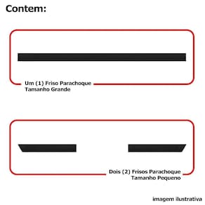 itens inclusos: - um 1 kit com três 3 frisos parachoque. Dimensões - comprimento: 181 cm / 68 cm - largura: 3,5 cm todos - espessura: 1 cm todos