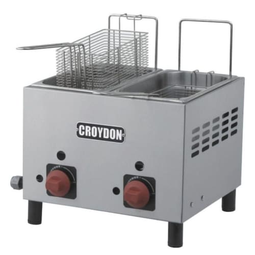Fritadeira a Gás 6 Litros 2 Cestas F2AG Croydon. Ideal para lanchonetes, bares, restaurantes e similares. Estrutura em aço inox e cubas independentes que permitem fritar diferentes alimentos simultaneamente, com eficiência e praticidade. CUBAS: 2-GN 1/3. CAPACIDADE: 2x3l. POTÊNCIA(GLP): 11.190BTU/h. PRESSÃO DE TRABALHO(GLP): 280mm.c.a. CONSUMO(GLP): 240g/h. PESO BRUTO: 7,4kg. DIMENSÕES(CxAxL): 39x41x41cm. Fritadeira a Gás 6 Litros 2 Cestas F2AG Croydon é na Atau.