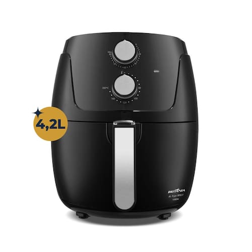 A Fritadeira Air Fryer BFR38 da Britânia é perfeita para quem quer preparar refeições deliciosas e sem muito trabalho. Com ela, você pode preparar alimentos fritos, assados, grelhados e muito mais, sem precisar usar óleo ou gordura. O cesto com revestimento Dura Mais é antiaderente e fácil de limpar, garantindo que você passe menos tempo na cozinha. Já a potência de 1500W permite que os alimentos sejam preparados rapidamente e com eficiência, e a capacidade de 4,2 litros é ideal para preparar refeições para toda a família. A tecnologia Air Flow garante um cozimento rápido e uniforme, deixando os alimentos crocantes por fora e macios por dentro. O timer de 60 minutos com desligamento automático evita que os alimentos passem do ponto.
