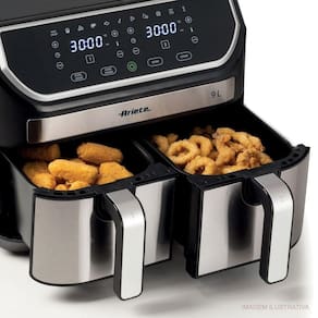 Com a Fritadeira Air Fryer Ariete 2 Cestos 4,5 Litros 127v você pode fritar qualquer prato em quantidade dupla, usando apenas uma colher de sopa de óleo para obter frituras saudáveis e saborosas ao mesmo tempo.