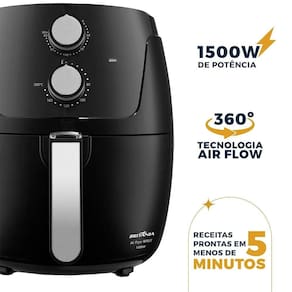 Características Principais: Altura: 27,5 Cm Capacidade: 4,2 Litros Tipo de Fritadeira: Sem Óleo Cor: Preta Alimentação: Disponível em 110V ou 220V Marca: Britânia Comprimento/Profundidade: 35 Cm Largura: 32,5 Cm Peso: 4,11 Kg