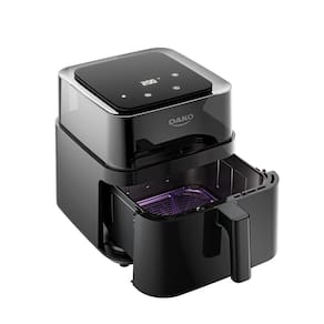 Air Fryer Dako 360 com visor 360°, 4 em 1 (Frita, desidrata, descongela e reaquece), programação de início, alerta de agitação, timer digital, luz indicadora de funcionamento.Porta-fio