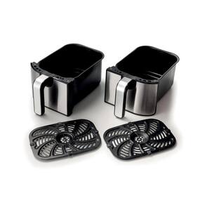 Prepare refeições completas de forma prática e rápida com a Air Fryer Dual Metal da Ariete. Com 2 cestos independentes de 4,5L cada, é possível fritar até 3,6 kg de batatas ou cozinhar dois pratos diferentes ao mesmo tempo, usando apenas uma colher de óleo para resultados crocantes e saborosos. A tecnologia de ar quente 360° garante cozimento uniforme, enquanto os 11 programas pré-definidos e funções especiais como Dual Cook, Sync e Max Crisp tornam o preparo mais prático e eficiente. Versatilidade, rapidez e sabor profissional direto na sua cozinha!