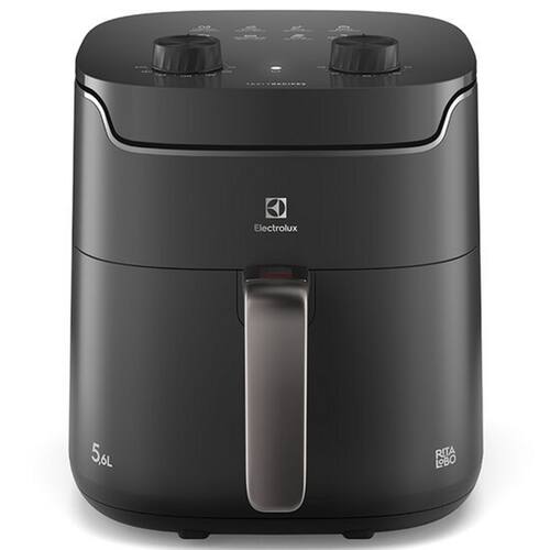 A Air Fryer Electrolux por Rita Lobo (EAF40) possui capacidade total de 5,6 Litros, com cesto interno removível e dupla camada antiaderente, facilitando a limpeza e a remoção dos alimentos. A tecnologia Air Cooking 360° funciona com a circulação de ar quente em 360°, cozinhando os alimentos uniformemente, deixando-os crocantes por fora e macios por dentro.