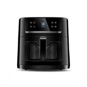 Air Fryer com 8 litros de capacidade, sistema Smart que identifica até 12 alimentos e se ajusta automaticamente, visor transparente com lâmpada, controle automático de temperatura de 50 a 200°C, timer com auto desligamento de até 60 minutos, função pausar.Porta-fio