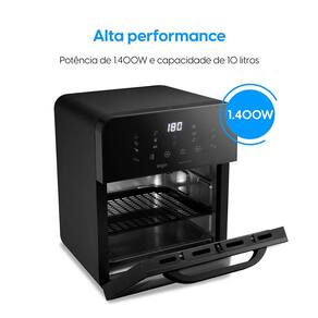 Um de seus principais diferenciais é o painel touchscreen digital, que oferece 10 funções pré-programadas, facilitando o preparo com apenas um clique. Além disso, sua funcionalidade 3 em 1 assa, frita e reaquece os alimentos de maneira eficiente, enquanto a tecnologia Air Circuit 360° garante um cozimento uniforme, utilizando pouco ou nenhum óleo, o que pode reduzir até 80% da gordura.