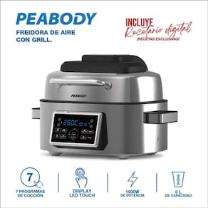 Potencia, versatilidade e alta capacidade em um unico aparelho! A Fritadeira Air Fryer Grill Peabody oferece 6 litros de capacidade e corpo em aco inoxidavel, ideal para quem busca praticidade e desempenho na cozinha. Seu sistema de cozimento por conveccao forcada garante alimentos crocantes por fora e suculentos por dentro, sem precisar de oleo.