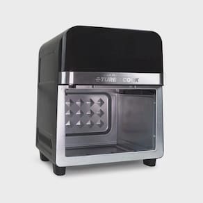 Fritadeira Air Fryer Mallory Turbocook com visor em vidro, capacidade de 6 litros, controle de temperatura ajustável, timer e potência de 1500W.Porta-fio