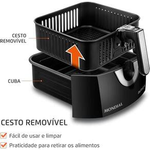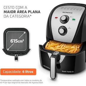 Seu design moderno combina com diferentes estilos de cozinha, enquanto a estrutura pensada para o uso diário oferece praticidade no preparo de batatas, carnes, frango, salgados, legumes e muito mais. A Air Fryer Mondial entrega versatilidade para assar, fritar, aquecer e gratinar, ajudando no preparo de diversas receitas com mais rapidez e comodidade.