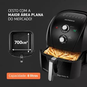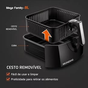 Fritadeira Air Fryer Mondial 8L, 1900W, cesto removível com antiaderente Duraflon, controle analógico de temperatura.Desligamento automático
