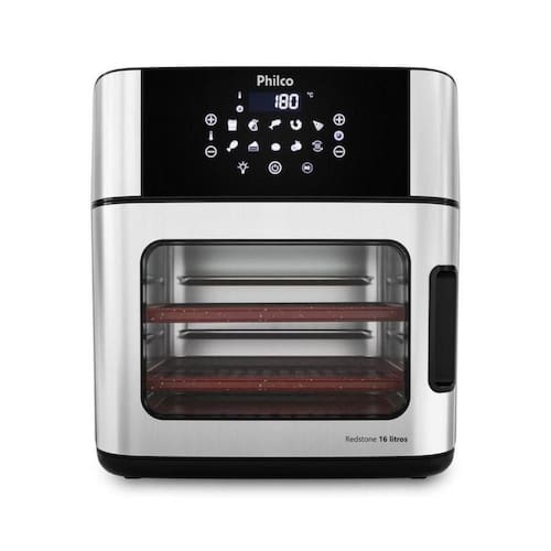 Acompanha 2 grelhas, bandeja coletora e um cesto com capacidade de 5,5L, garantindo mais versatilidade para assar, grelhar ou fritar sem oleo. Possui controle de temperatura ajustavel de 80C a 200C, perfeito para diferentes tipos de receitas. E para completar, os acessorios contam com revestimento antiaderente ceramico Redstone, que nao gruda, e facil de limpar e altamente resistente. Uma aliada completa para quem valoriza eficiencia, sabor e praticidade na cozinha!