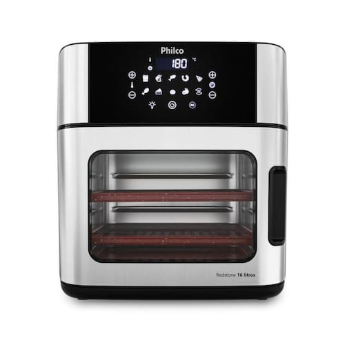 Air Fryer 16L com painel digital, 10 funções pré-programadas, porta removível lateral, visor Glass, controle de temperatura de 80°C a 200°C, 2 grelhas, bandeja coletora e cesto de 5,5L com revestimento antiaderente cerâmico Redstone., Air Fryer 16L com painel digital, 10 funções pré-programadas, porta removível lateral, visor Glass, controle de temperatura de 80°C a 200°C, 2 grelhas, bandeja coletora e cesto de 5,5L com revestimento antiaderente cerâmico Redstone.Porta-fio