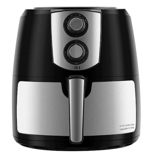 Fritadeira Air Fryer Philco Jumbo Inox com capacidade de 7,2L (5,5L útil), timer de 30 minutos, temperatura ajustável de 80°C a 200°C, cesto removível antiaderente e base antiderrapante.Porta-fio