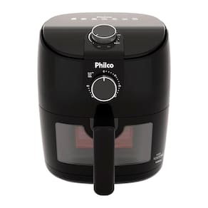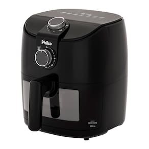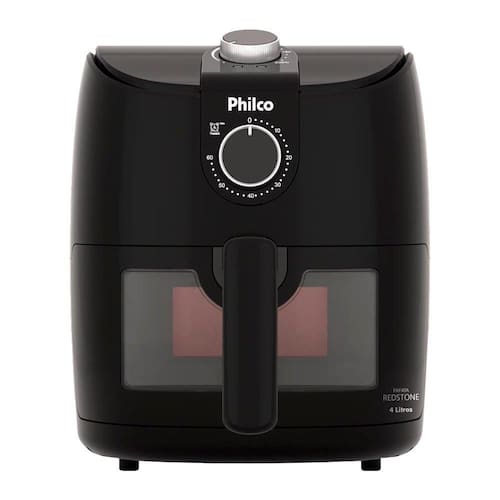 Fritadeira Air Fryer Philco com 1500W de potência, capacidade de 4 litros, revestimento Redstone, timer de 60 minutos, temperatura ajustável até 200°C e desligamento automático.Porta-fio