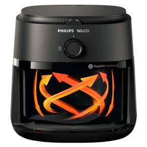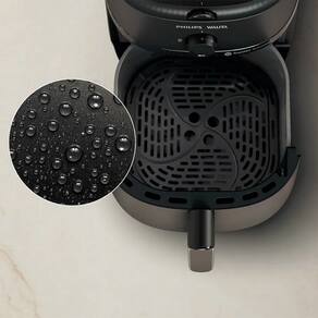 Tecnologia Rapid Air para cozimento uniforme e rápido. Ajuste de temperatura de 80 a 200 graus. Timer de 60 minutos com desligamento automático. Peças removíveis e próprias para máquina de lavar. App HomeID com mais de 500 receitas.Porta-fio